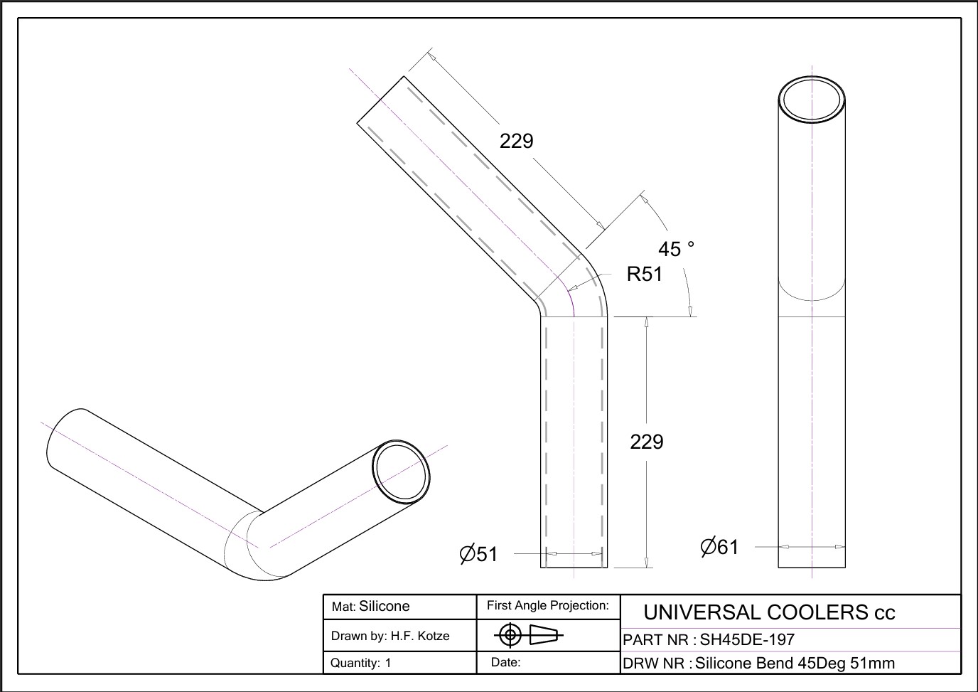45° Bend 51 mm ID, 200 mm legs (SH45DE-197)