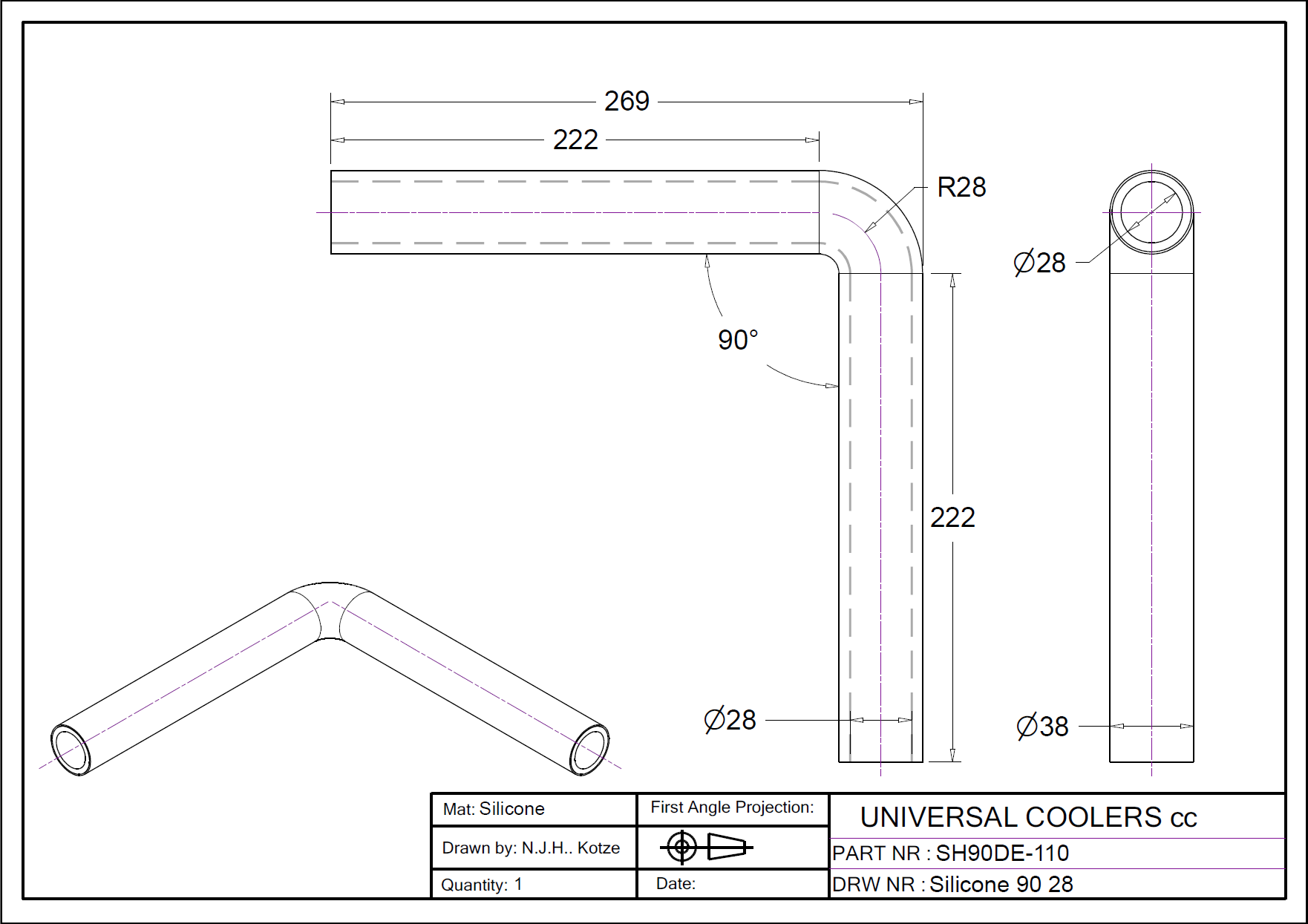 90° Bend 28 mm ID (SH90DE-110)