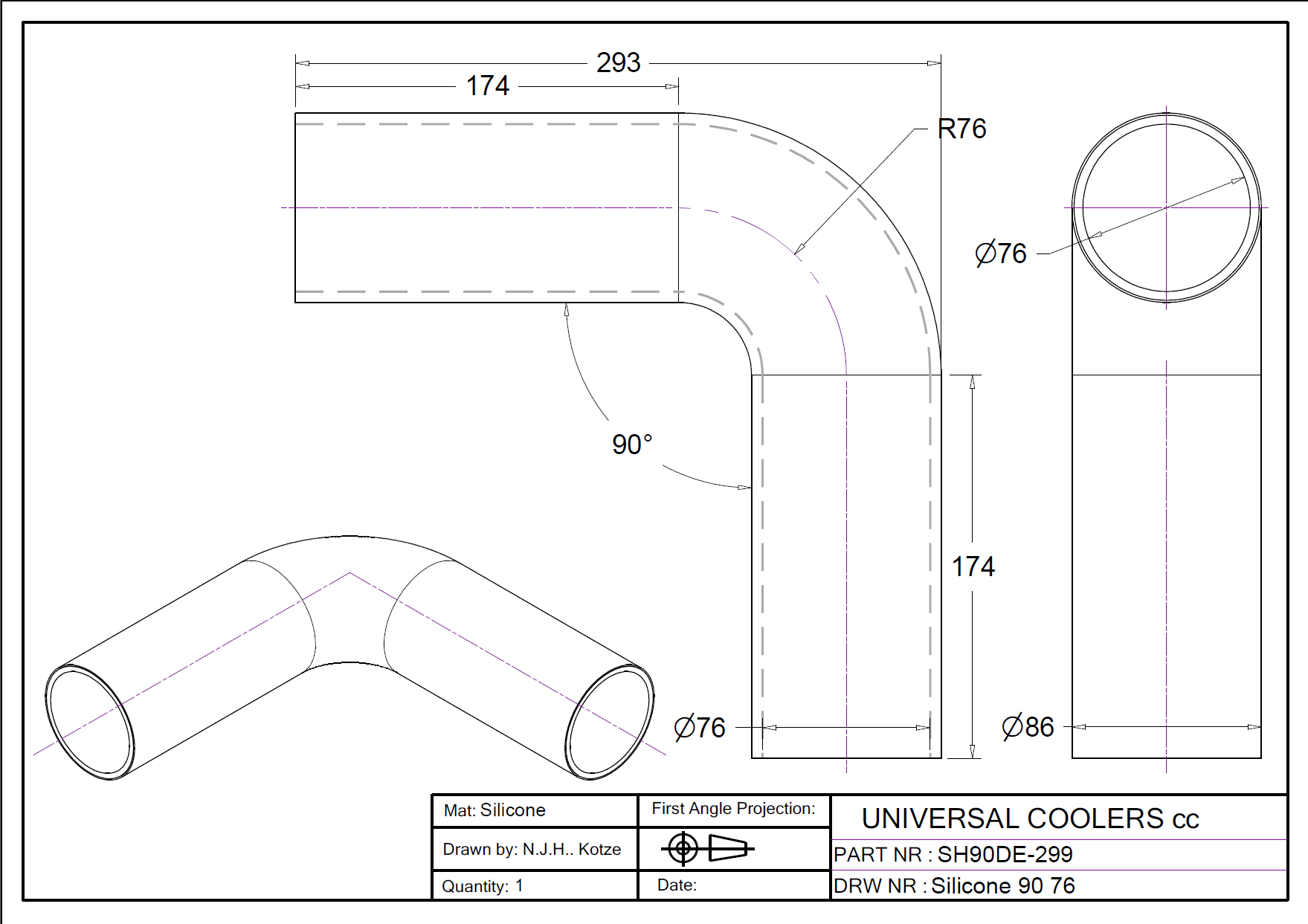 90° Bend 76 mm ID, 200 mm legs (SH90DE-299)